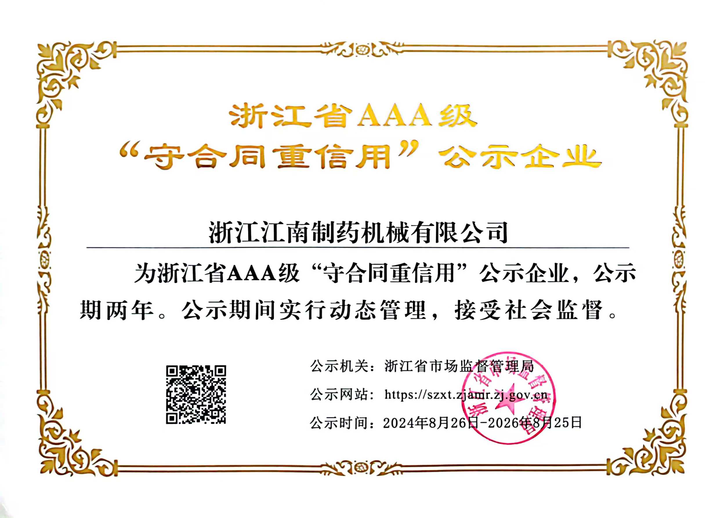 在此次发布的名单中,开云网页版登录入口榜上有名,入选2024 年浙江省 AAA 级守合同重信用企业名单。